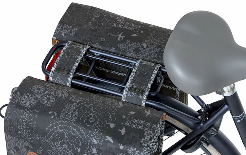 De Basil Bohème is geschikt voor verschillende fietsen en dankzij de meegeleverde riempjes gemakkelijk op iedere bagagedrager te bevestigen. De bovenkant van de fietstas bestaat uit twee banden, waardoor je altijd gemakkelijk bij je bagagedrager en snelbinders kunt. Handig! Zo plaats je zonder problemen een kinderzitje of ledverlichting.