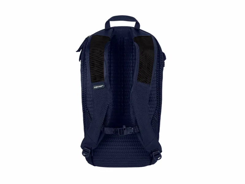 Aan de binnenkant van de Eagle Creek Explore rugzak zijn wat kleine vakjes voor, je raad het al, kleine spulletjes. Denk aan je sleutels, kleingeld, lippenbalsem of je zonnebril. Zo vind je kleine spullen makkelijk terug. Aan de buitenkant vind je 2 vakken voor een drinkfles. Zo droog je bij warm weer in ieder geval niet uit. Met de compressiebanden krijg je alle lege (lucht)plekken weg en maak je de rugzak stabiel. De achterkant van de rugzak is gewatteerd, dat zorgt voor een beetje ventilatie en ademruimte waardoor jij nรฉt iets minder zweet. Tot slot sluit je de rugzak met een stabiliteitsbandje om je heupen en een bandje om je borst. Oja, de borstband heeft ook een noodfluitje voor als je ooit in de greppel beland, handig!