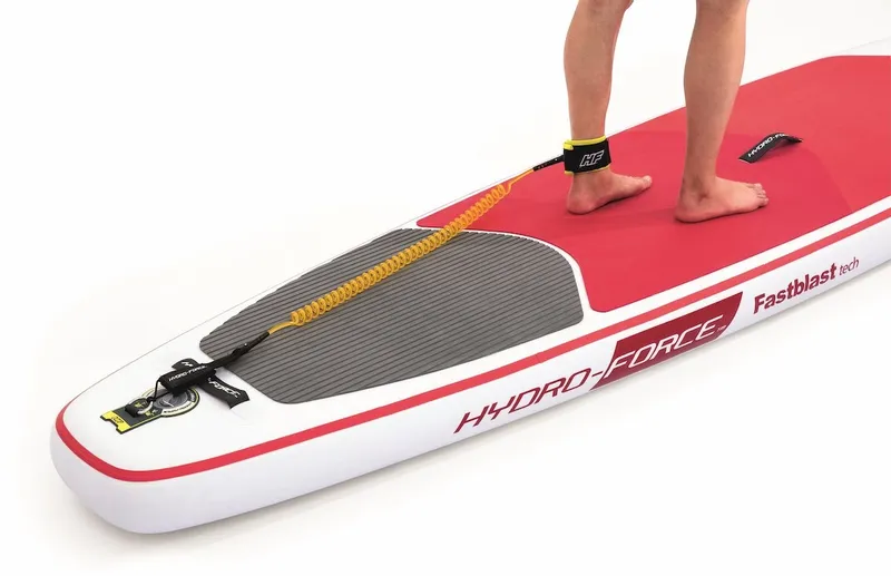 Het opblaasbare Hydro Force Fastblast Tech supboard is gemaakt van een kern van polyester, met daaromheen twee lagen gelamineerd PVC. Misschien zegt je dit niet zoveel, maar dit betekent dat het board niet snel lek gaat, UV-bestendig is en tegen zout water kan. De โdropstitchโ techniek is super sterk en combineert stevigheid met licht gewicht. Het resultaat? Een heel sterk supboard dat makkelijk te besturen en licht en draagbaar is.