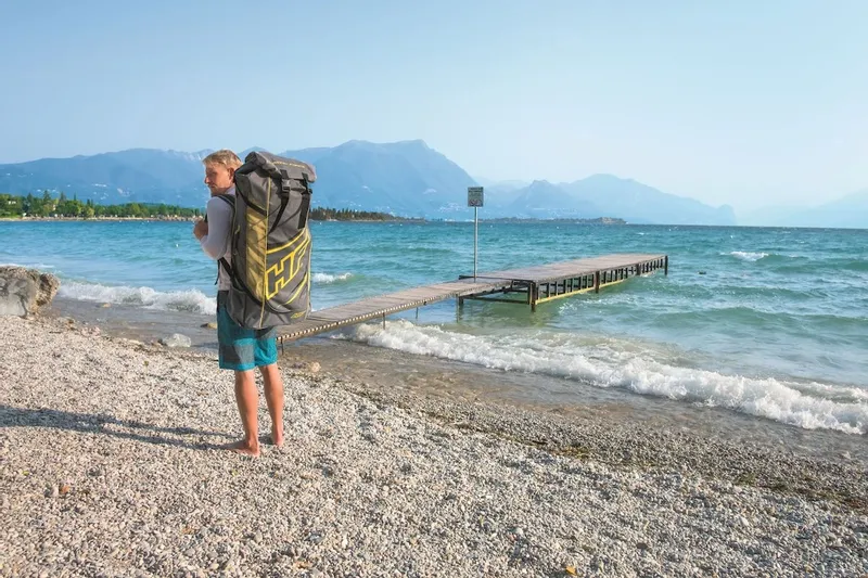 Dit opblaasbare supboard wordt geleverd in een luxe rugtas. Hierdoor neem je de Hydro Force Fastblast Tech makkelijk รฉn comfortabel met je mee. De rugzak heeft namelijk een verstevigd rugvlak, een heupgordel en gewatteerde schouderbanden.