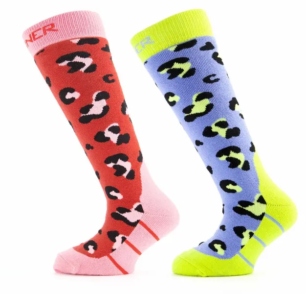 Sinner Animal skisokken – Roze/blauw – 2 paar