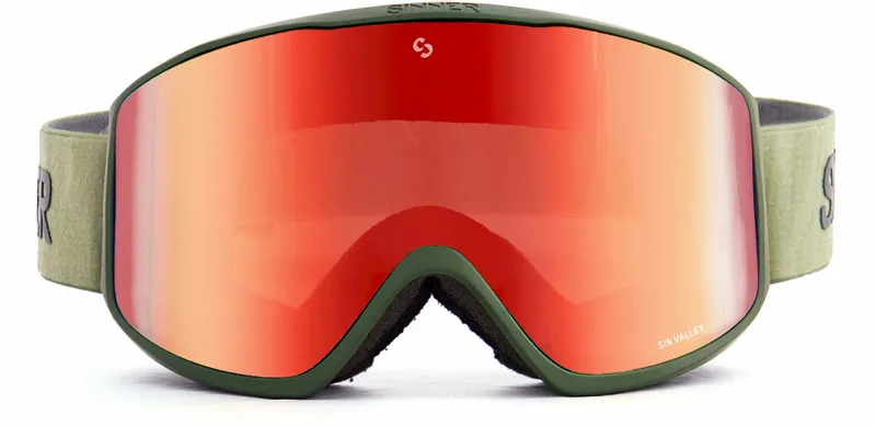Sinner Sin Valley skibril – Mat Groen – Rood/roze lens