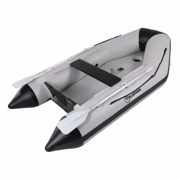 De Talamex Aqualine QLA270 is een zeer comfortabele rubberboot. De Aqualine QLA270 heeft een opblaasbare kiel. Hierdoor wordt een v-bodem gecreรซerd die zorgt voor uitstekende vaareigenschappen. Dankzij de opblaasbare bodem is de rubberboot snel vaarklaar te maken. De Talamex Aqualine QLA270 is gemaakt van hoogwaardig en duurzaam PVC. Ook heeft deze boot 3+1+1 (3 + opblaasbare kiel + opblaasbare bodem) luchtkamers. Mocht er dan een luchtkamer lek raken, dan kun je altijd nog veilig aan de kant komen. Om de veiligheid altijd te kunnen garanderen, is het aanbevolen om een reddingsvest of zwemvest te dragen tijdens het varen met de Talamex Aqualine QLA270. Alle Talamex rubberboten zijn door de Dutch Marine Inspection CE gecertificeerd, waardoor ze aan alle Europese eisen voldoen.